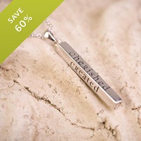 $10.49 Rhodium Plated metal pendant–tarnish and scratch resistant. Chain length: 16″ with 2″ extender. Pendant features words engraved on 4 sides. Clasp is engraved with “Psalm 139:14”. Pendant is 1″ long x 2mm wide.