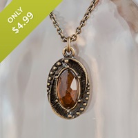 Redeemed – Grace Necklace. Size: Pendant: 7/8″L x 5/8″W. Chain: 30″L, with 2″ extender. Material: zinc alloy with antiqued gold finish; amber-colored cut glass, faux pearls.