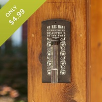 Redeemed – Everything Beautiful – Rain Gauge. Size: 4″W x 8 1/4″H x 2 1/4″D. Material: metal, glass. Screws included.