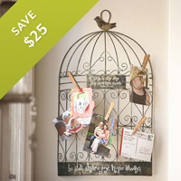 $11.99 This Is the Day – Bird Cage Card Holder. Size: 14 1/4″W x 25 1/8″H x 4 1/4″D. Includes 4 small clothespins.