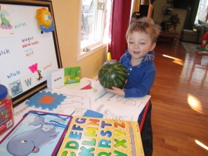 We’re on letter “W” in our preschool alphabet games. This week “W” is for Watermelon.