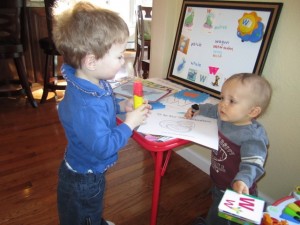 We made a trip to the library and Peanut enjoyed the lego table and we found some great letter “W” books.