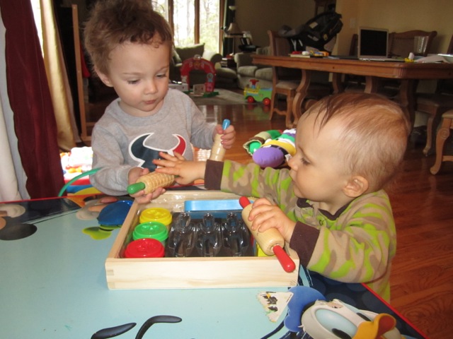 The boys are also learning how to play “wrestling”. Here’s a cute pic of them having fun together.
