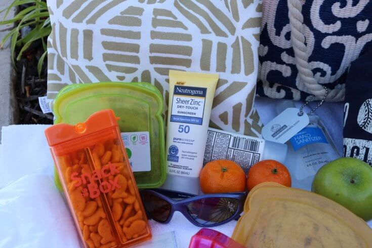 - Drinks and Snacks – No matter how often I feed my kids – it seems that the moment our family leaves our home, one of my boys tells me he is hungry or thirsty. I use plastic boxes to keep sandwiches from getting squished. I also keep drink boxes with water or juice on hand at all times, and snack cups with crunchy snacks are a must!