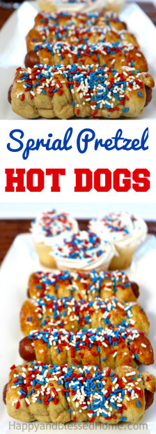 - Red, White and Blue Spiral Pretzel Hot Dogs