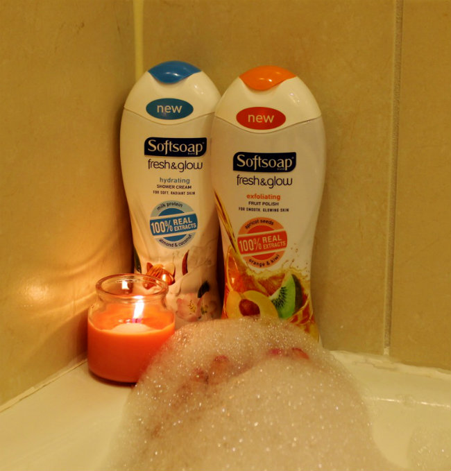 - You can use a body wash like Softsoap Fresh & Glow exfoliating Fruit Polish with apricot and kiwi to exfoliate your skin. Follow up with Softsoap Fresh & Glow Hydrating Shower Cream Body Wash to hydrate your skin. These body washes smell beautiful and they leave your skin silky soft.