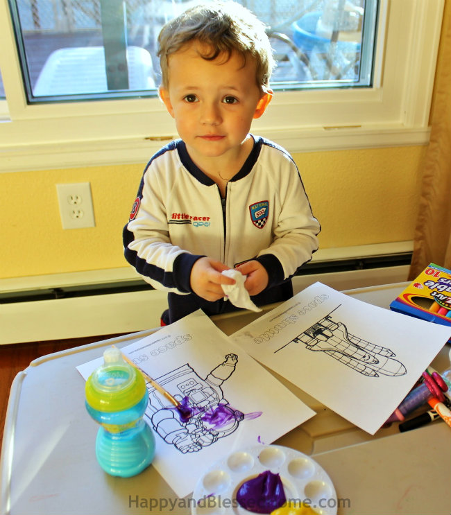 Tip #7 : Keeping hands clean during craft time. I love that my three-year-old already knows how to clean his own hands! Keeping wipes within reach and easily available cuts down on messes during craft time.