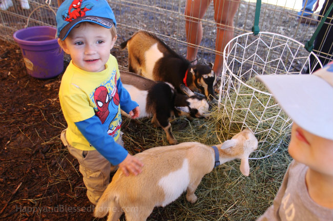 a visit to the petting zoo to pet goats,