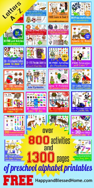 You can purchase the full packs of these alphabet printables online in my store at Teachers Pay Teachers or as part of a Montessori learning curriculum at VisualMontessori.com. I hope you’ll join us in our preschool learning adventures! Thanks for being a Happy and Blessed Home fan and if you’re using these printables and are enjoying them, please leave a comment. I would love to hear from you!