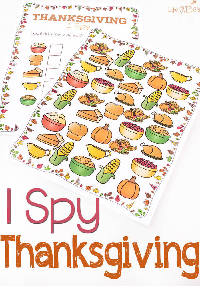 - Free Thanksgiving I-Spy – Great for cognitive development among littles.https://lifeovercs.com/free-printable-thanksgiving-i-spy/