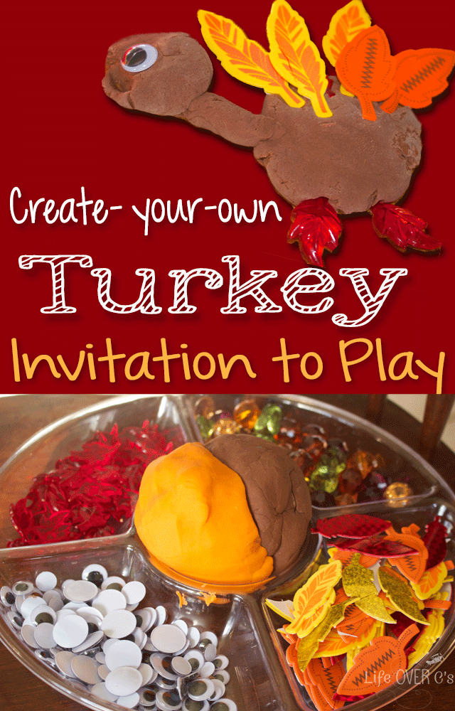 - Play-Doh Turkey – Fantastic sensory play and it teaches kids about spatial organization of a bird – as in the order of the parts of the turkey.https://lifeovercs.com/create-a-turkey-free-play-dough-printable-for-thanksgiving/