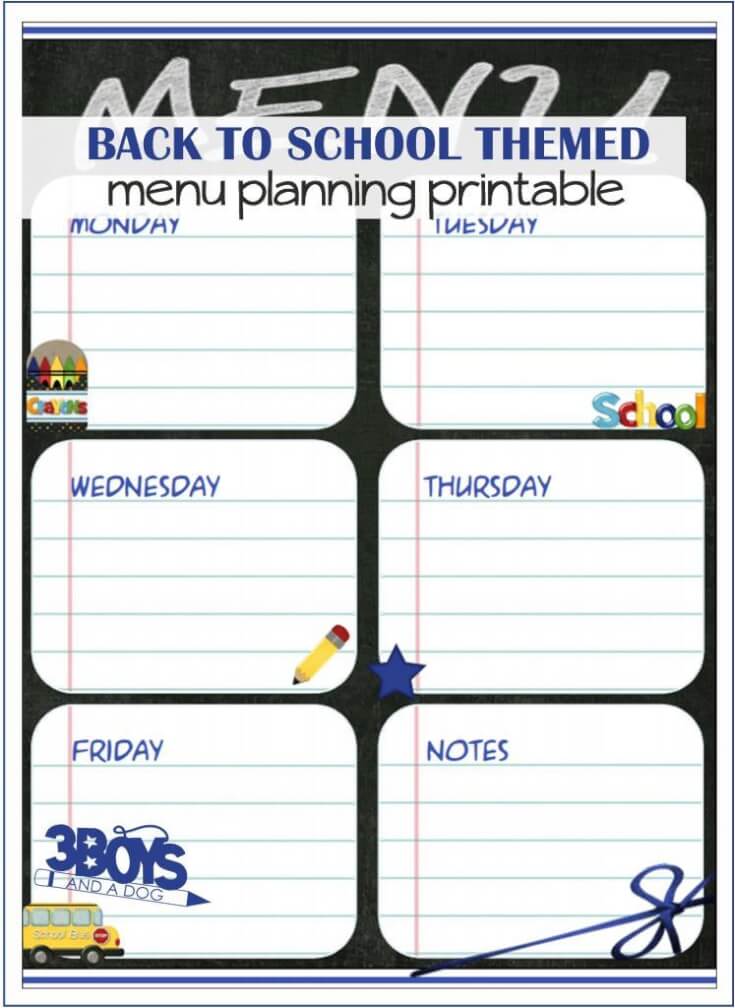 - Let’s not forget about mom! Here’s a FREE Back to School Menu Planning Printable from 3 Boys and a Dog: http://3boysandadog.com/back-to-school-menu-planning-printable/