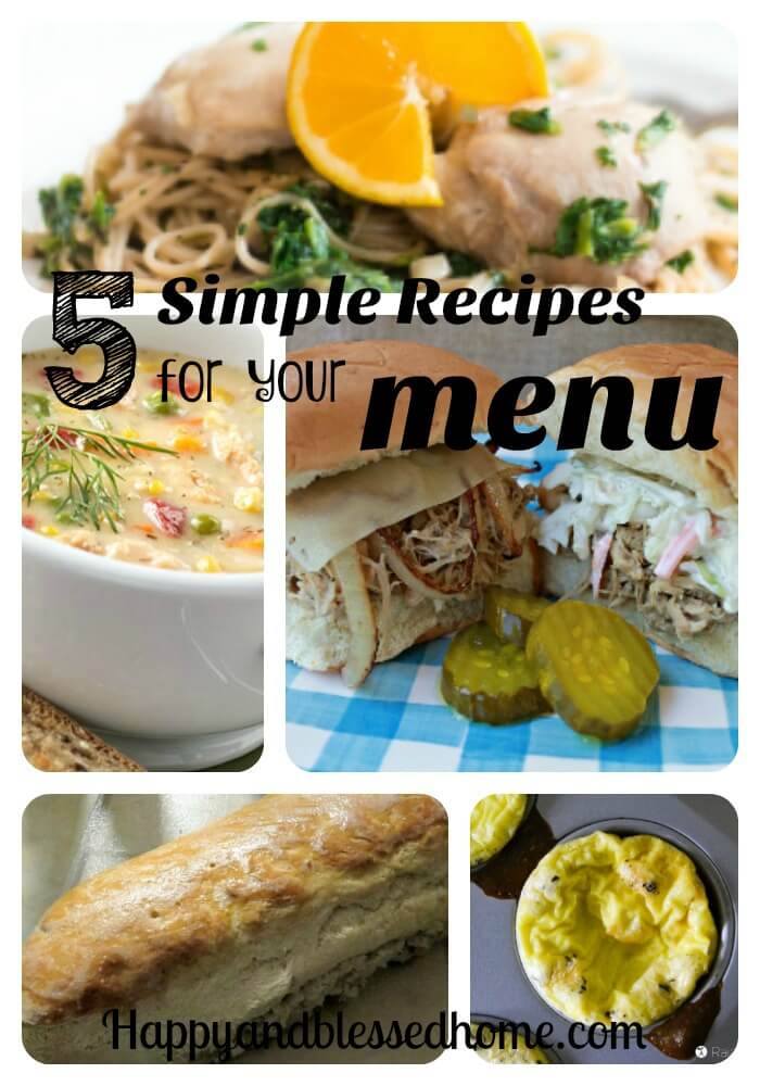 This week we week our emphasis will be on making our menu simle, with 5 Simple Recipes to add to your menu. I know how crazy my life can be with kids, a husband, and everything in between. Not only am I short on time, but making everyone happy is equally chanllenging. So I decided that a simple menu was worth working towards.
