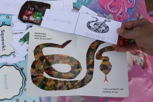 Once they found the animal, I would show them the same animal in Spanish. I would pronounce the Spanish name and ask them to repeat the Spanish name for the animal after me.