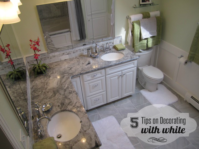 I love to decorate with white. But with two small children in our home, I’ve had to limit my decorating with white to the master bath.