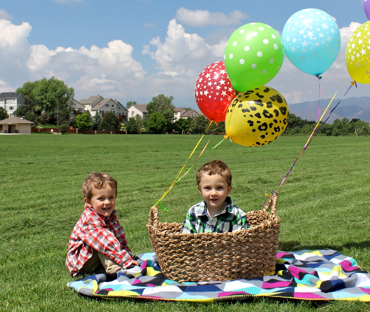 Tip 3: Teach kids to appreciate gravity. “Mommy – why won’t the basket fly?” The helium balloons aren’t strong enough for takeoff. But they do make for some fun photos! If your family enjoys hot air balloon fun, check out my post with 50 Free Pages of Hot Air Balloon Printable and Party Decorations.