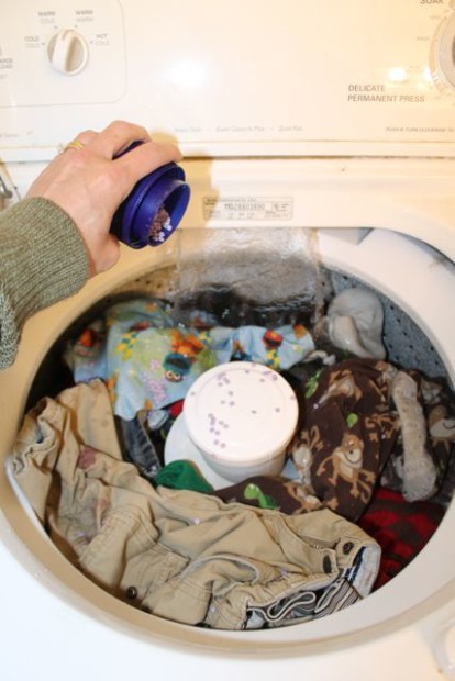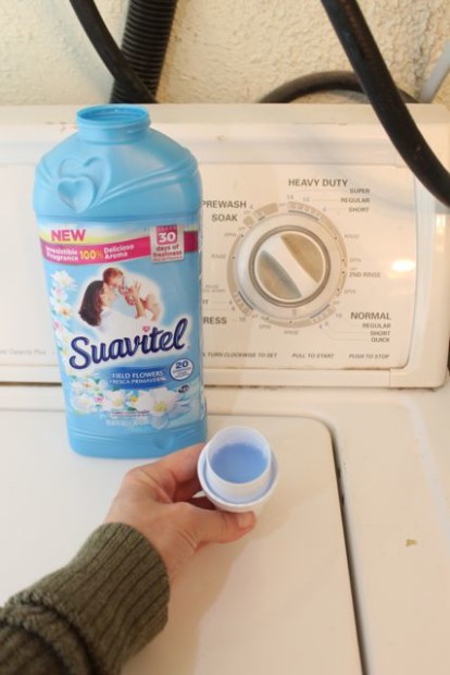 If you’ve never tried a fabric softener – this will help you get the fluffiest, softest towels ever. Just add it during the rinse cycle. The only caveat – don’t wash your children’s pajamas in the fabric conditioner – it reduces the flame retardant properties of the fabric – see the bottle label for more info.