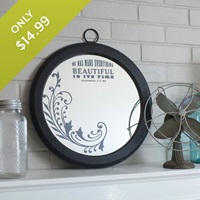 $17.99 Size: 20 1/2″ L x 12 1/4″H Hue: dark antiqued silver. Material: Metal, slightly textured. Screws for hanging included