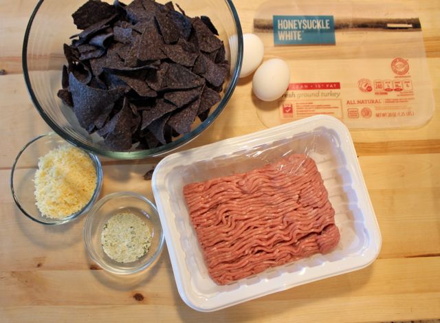 Ingredients for the All American Blue Corn Chip Turkey Balls