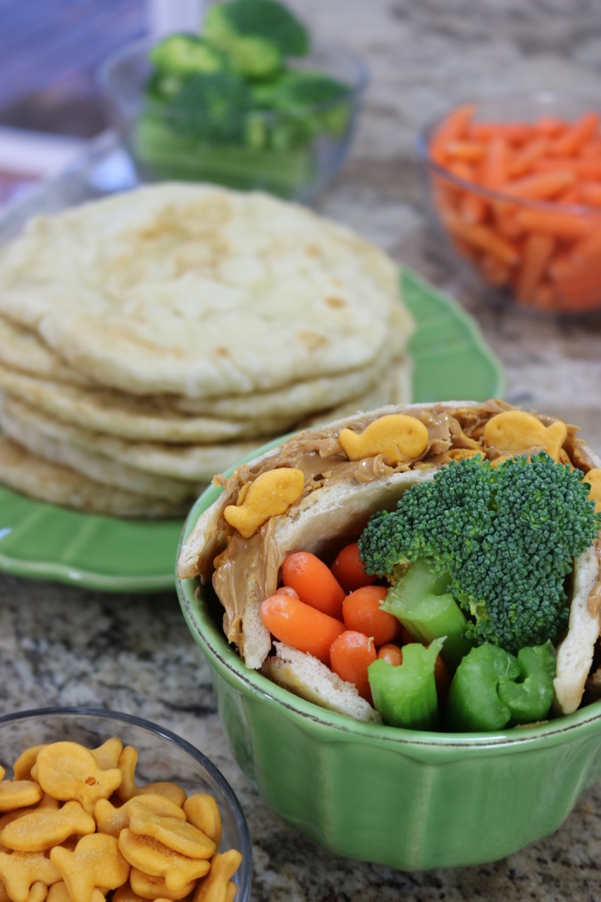 I think flatbread is the perfect bread to use for teaching kids how to make their own sandwiches. My eldest is almost six years old and I trust him to add peanut butter to a dish, but flatbread holds up much better than a slice of store bought bread. Especially when little hands are learning how to spread peanut butter onto an edible surface.