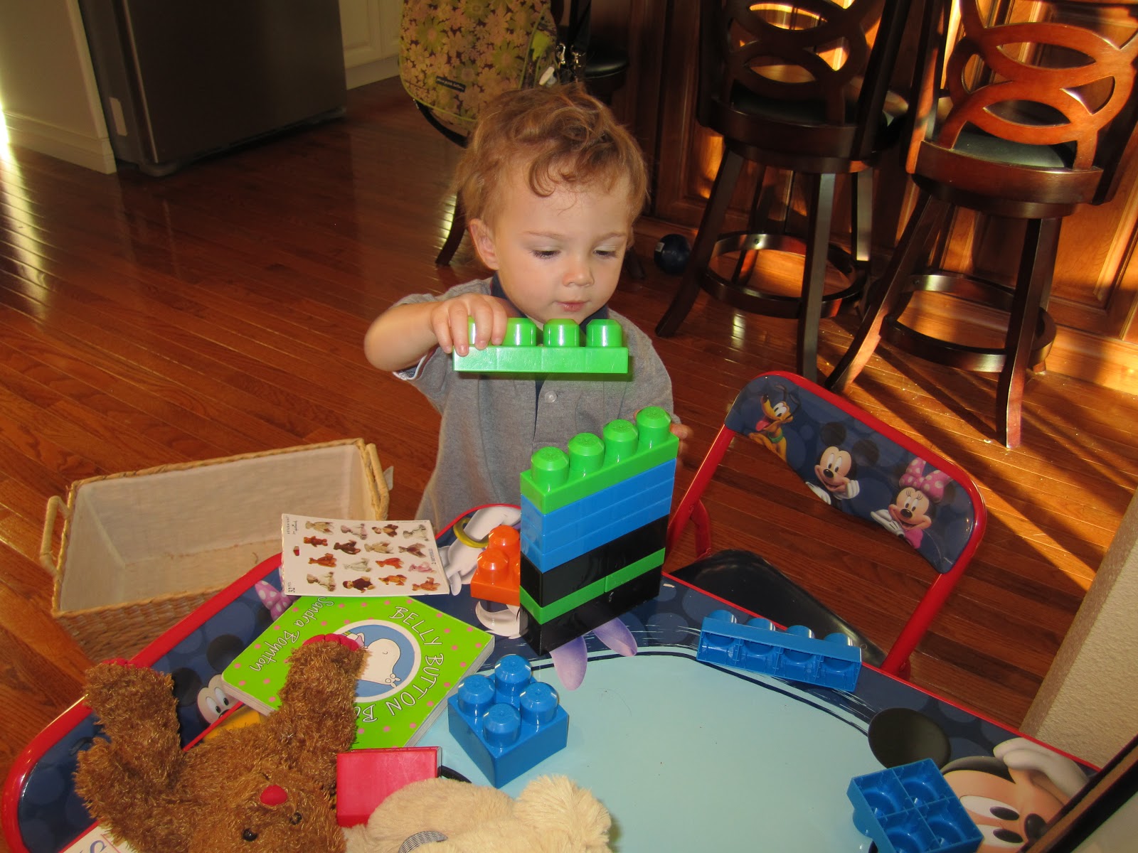 This time the blocks were the biggest hit. Peanut wanted to build a tower. Once built he would tear it down and start all over. It was great fun watching him play with the blocks.