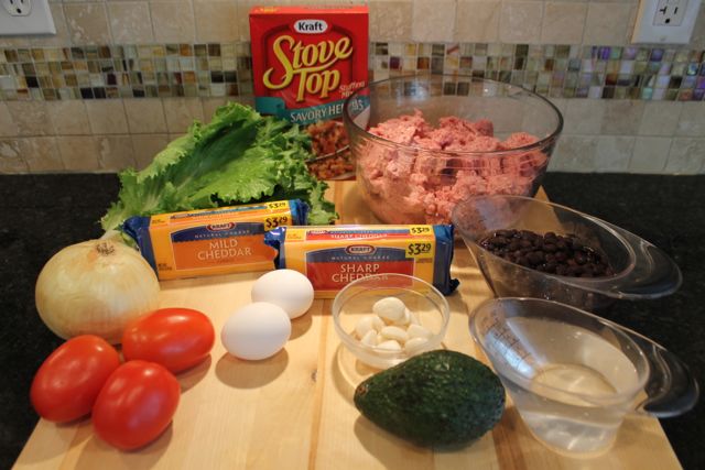 Step 4 – Add the box of Stove Top Stuffing to the ground meat mix and eggs.