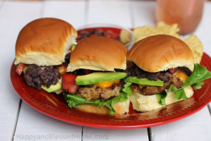Black bean Salsa Sliders with Avacado Lettuce and Tomato from HappyandBlessedHome.com