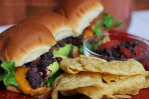 Close up of Black Bean Salsa Sliders and Mango Ice Cream Float from HappyandBlessedHome.com