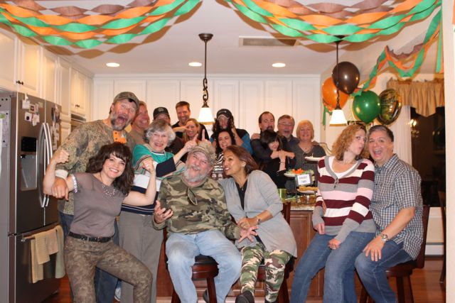 We also had a camoflage face painting contest. The man with the most camo on after 15 seconds won. Sorry I don’t have a photo, because that was really fun! Altogether we had four winners from the teams and face-painting contest. Their prize packs included a free Duck Dynasty themed beard. We photographed our winners and had the whole family represented: Willie, Uncle Si, Jase, and Phil.