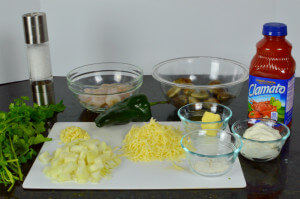 Simple Ingredients to create a savory dish – Shrimp and Clam Chile Relleno