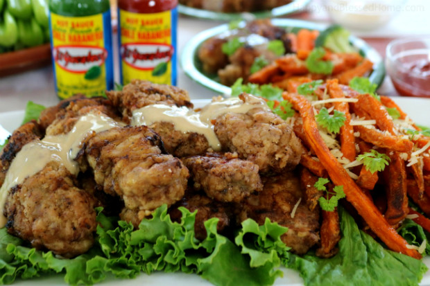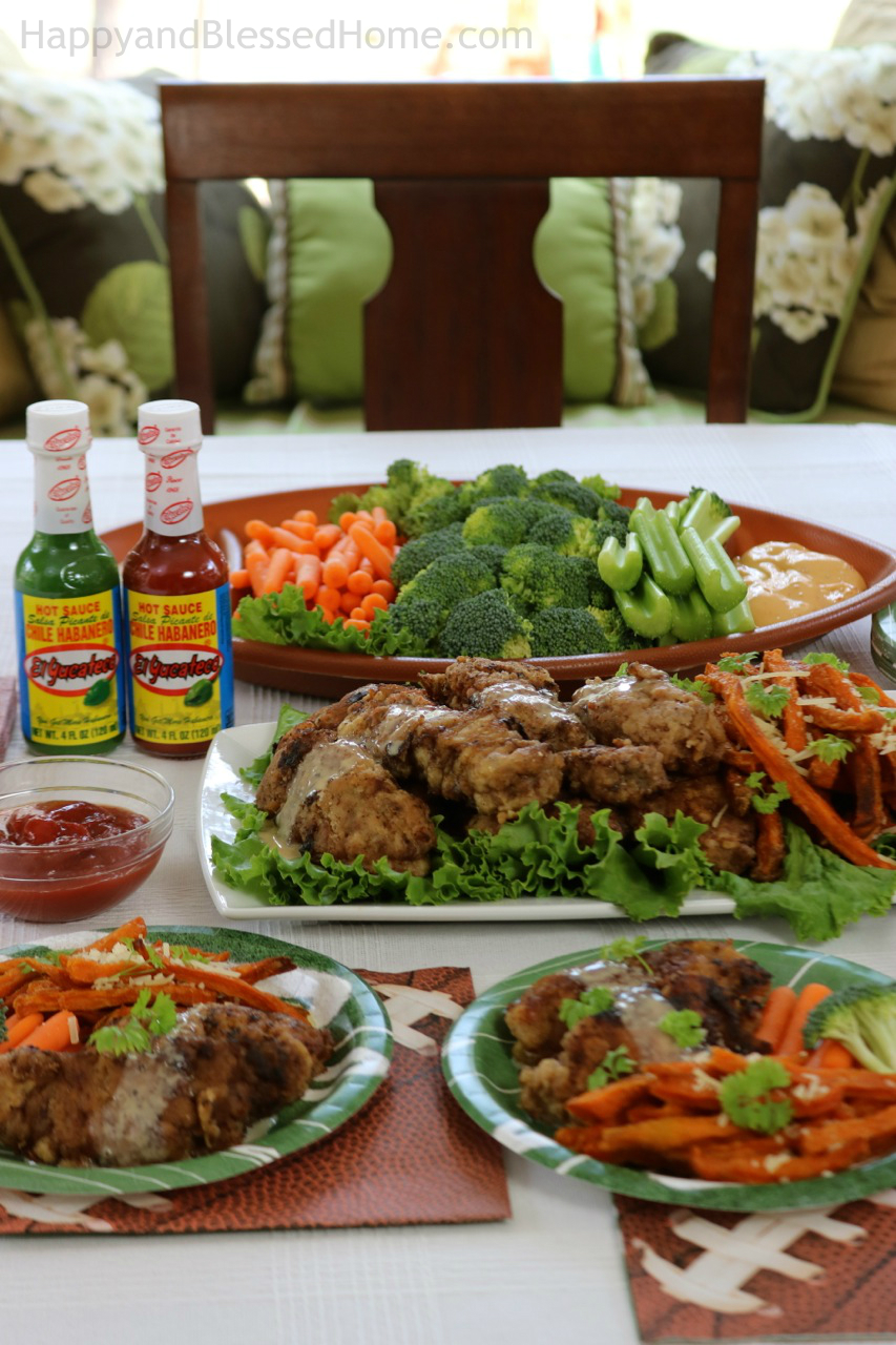 El Yucateco hot sauce is the perfect way to rev up the flavor on your next party. Plus, since these Chicken Fried Steak Fingers with Hot Sauce are a finger food – they make a perfect game day appetizer. We served ours with gravy, sweet potato fries, and loads of crunchy veggies for a filling and hearty party tray.