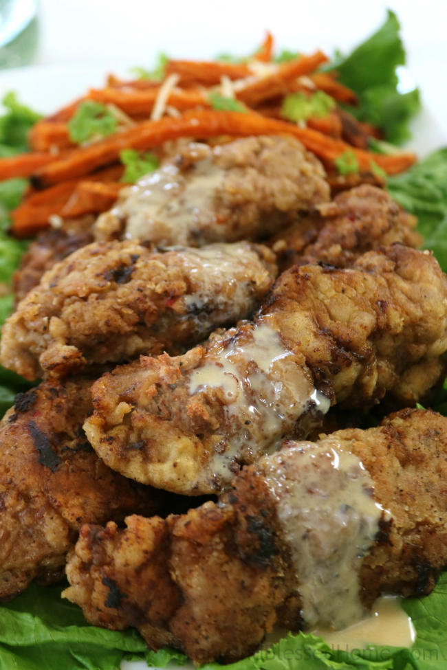 You can make and serve these Chicken Fried Steak Fingers and Hot Sauce with homemade gravy, but I opted to use a ready-made gravy to save a little time in the kitchen.