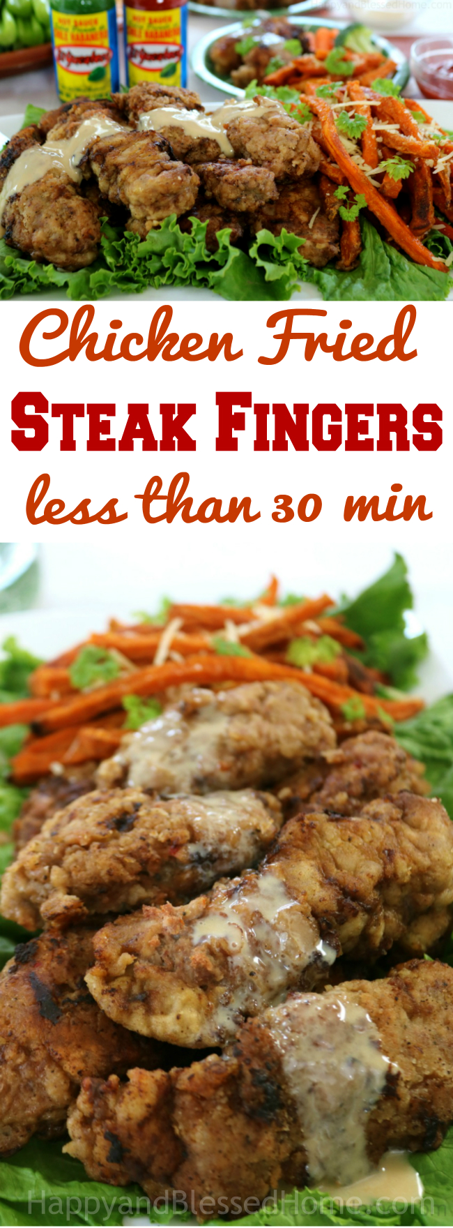 Our family enjoys Chicken Fried Steak Fingers with sweet potato fries sprinkled with parmesan cheese, sea salt and parsley. Not only does it look great – it tastes delicious too!