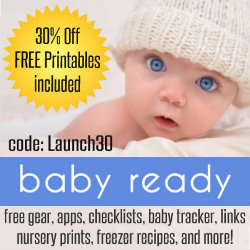 You can purchase “Baby Ready” and receive the eBook and all the printables, regular cover price is $7.99 in one easy download by clicking on the image below. Use the code Launch30 to take 30% off the cover price and get the entire bundle for $5.59.