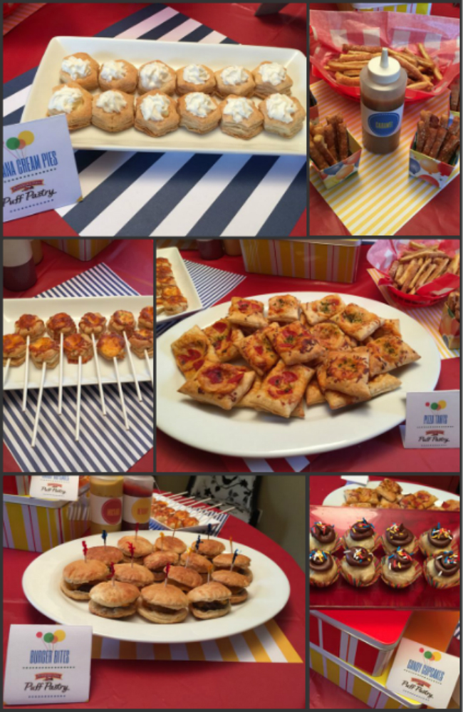Are you planning a party? Hosting a family get-together? I think you’ll love some of these fun ideas for puff pastry treats and snacks created by my mom-blogger friend Mariah at FormulaMom.com. The wide variety of dishes she created included mini-banana cream pies, cinnamon french fries, pizza bites, burger bites, candy cupcakes and more. Her birthday party fare proved that puff pastry can be used for a wide range of appetizers, desserts and main dishes. Perfect for almost any occasion!