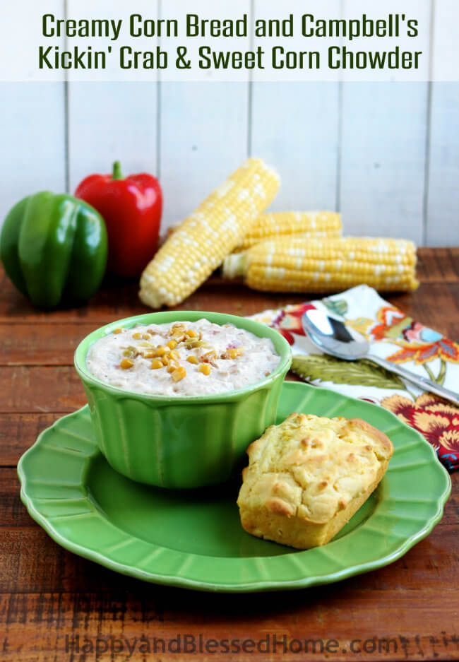 Creamy Corn Bread and Campbell’s Slow Kettle Kickin’ Crab & Sweet Corn Chowder HappyandBlessedHome.com