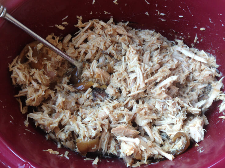 Step 3: Once the roast is done cooking, fork shred the meat while inside the crock pot to allow it to soak in the juices.