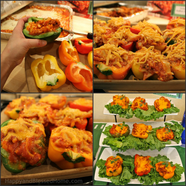 The miniature football players, cheerleaders and referees were a big hit with our party guests. But I also wanted to serve up some delicious and satisfying football party food for this party. So I cooked up some hearty stuffed bell peppers with Stouffer’s® Party Size Lasagna with Meat & Sauce (90 oz). This recipe is very easy to make and this serving method makes a convenient main dish into an easy-to-serve serving-size for hungry party guests.