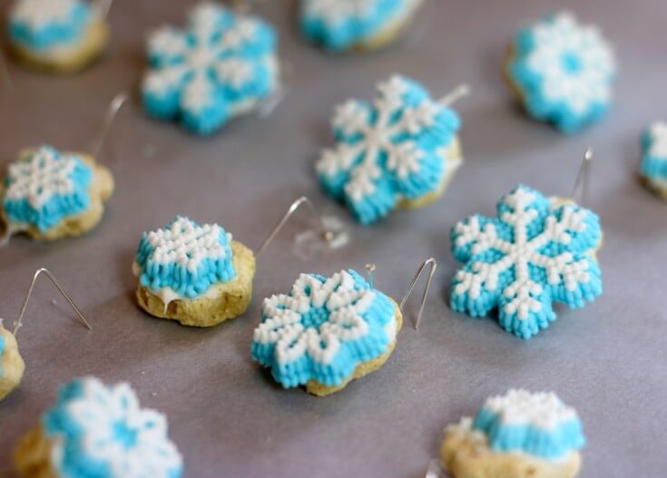Step 3: Press the snowflake decoration into the top of the frosting to secure it in place.