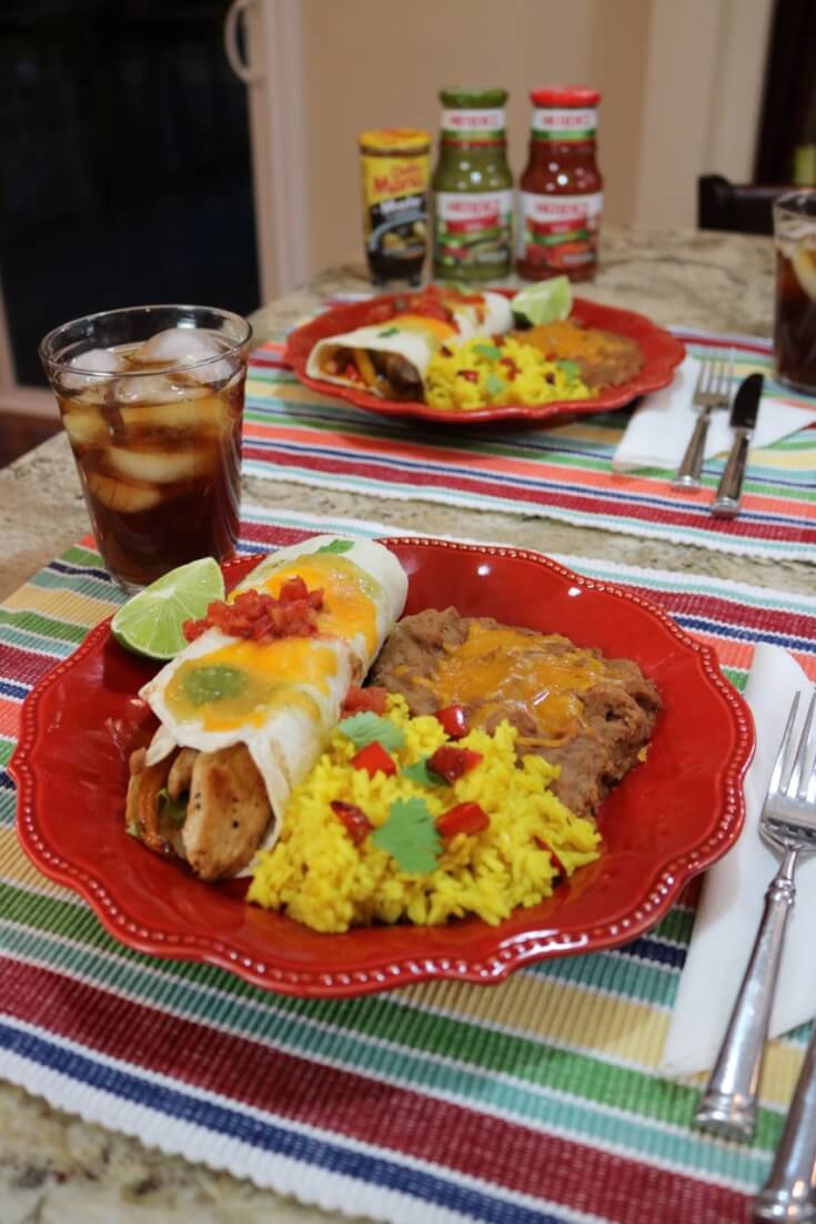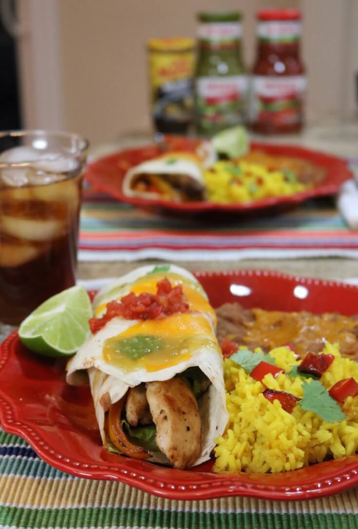 Served with refried beans topped with shredded cheddar cheese and Mexican yellow rice topped with bell peppers and cilantro, this Easy Mexican Fajitas – Chicken dish is TASTY! Top it with HERDEZ® for even more flavor!