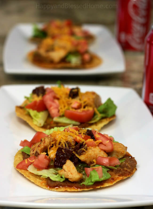 An open faced Tostada is the perfect dish for any family gathering, since each guest can top the tostada any way they like. The Chipotle Pepper Chicken Tostadas pictured here have everything on them, but at home you can create a topping bar to make it easy for your guests to customize their tostada to match their personal favorites. Keeping ice cold Coca-Cola on hand in the fridge or in a cooler keeps refreshments accessible and easy for guests to drink.