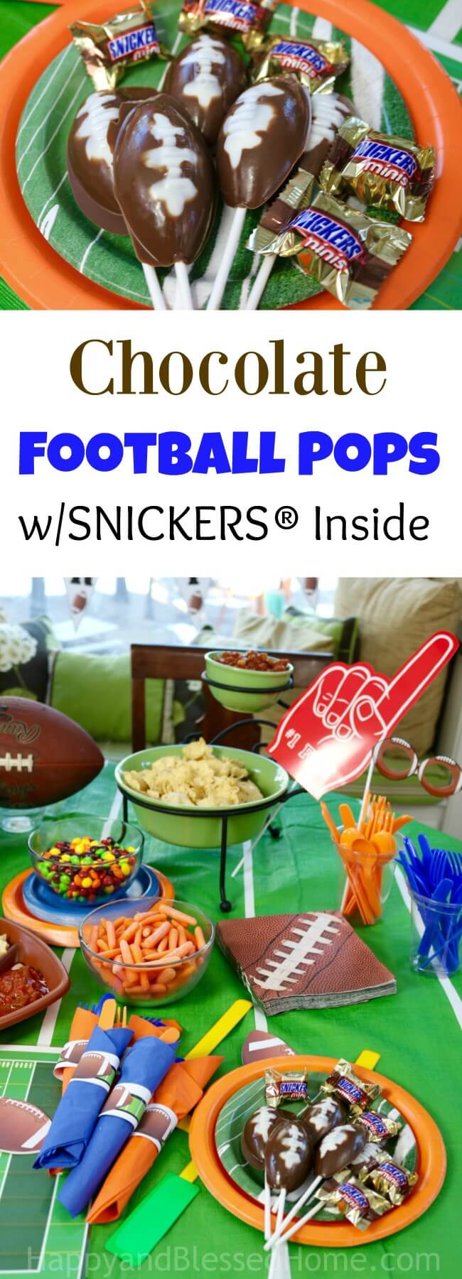 So what do you think? Think you’ll make some Game Day inspired Chocolate Football Pops with SNICKERS® Inside? Or would you rather serve TOSTITOS® with salsa and cheese? Or maybe you have another snack that’s perfect for football party fun?