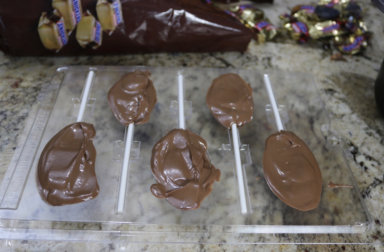 Directions to make Chocolate Football Pops with SNICKERS® Inside