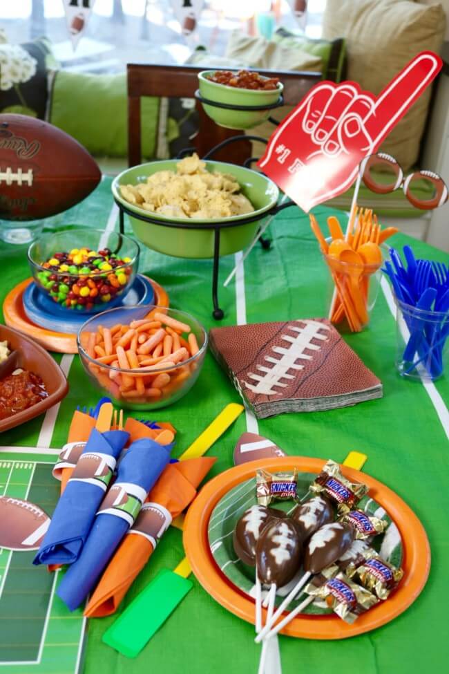 Ta-da! A fun and festive football party set-up perfect for football fans who want to celebrate their team’s successes.