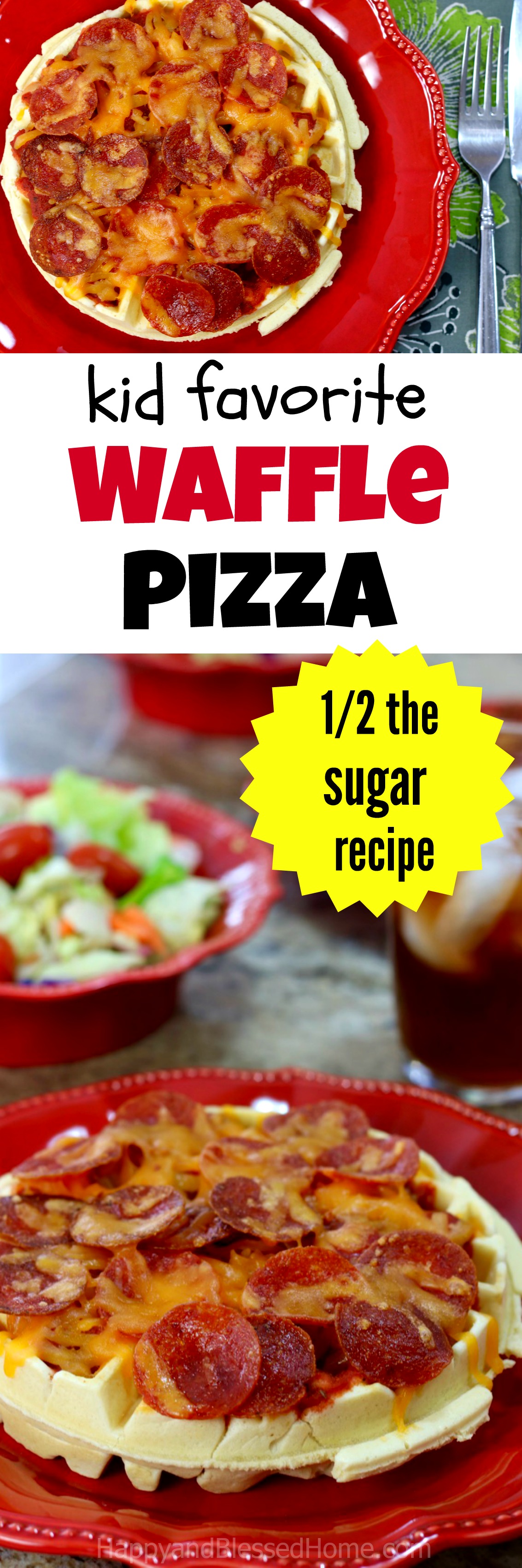 Do your kids love waffles and pizza? How do you top a pizza in new and fun ways? You could top this one with not just traditional pizza toppings but with peanut butter and jelly, ham and cheese or any variety of traditional pizza or sandwich toppings. Does this easy recipe give you new uses for your waffle iron? Please share a recipe idea or leave a comment below and join the conversation. I always love hearing from my readers!