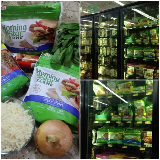 You can find everything featured here at Walmart. I found the MorningStar Farms® products in the frozen food section and all the produce in the fresh produce section. Crescent rolls can be found near the dairy case.