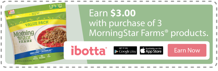 By the way, right now you can earn $3.00 on MorningStar Farms products via a special Ibotta offer. Just click this link: earn on MorningStar Farms, or the image below.