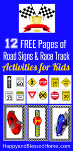 200 – 12 Free Pages of Road Signs and Rack Track Activities for Kids – Free Printables for race car play for boys and girls from HappyandBlessedHome