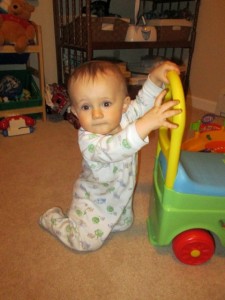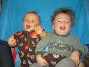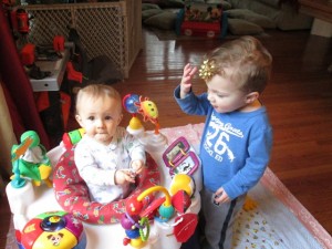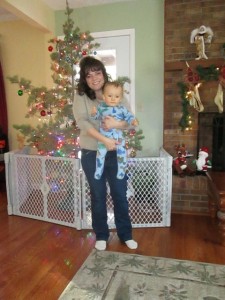 Last night the boys grandmother, Nana, stayed the night, and together with my dad, myself, Jimmy and the boys we enjoyed a warm fire in the fireplace and some great family time together. Peanut spent the eveing either playing hide and seek with Nana or playing on the keyboard with Pop Pop. I was able to lounge on the floor with Nugget while he crawled around and got to do a little ticking. Nugget can pull himself to standing position now so walking isn’t far away.
