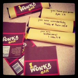 6. Stitched and Sown shared a great way to enjoy time as a family – Movie Night. These are their special WONKA bars.